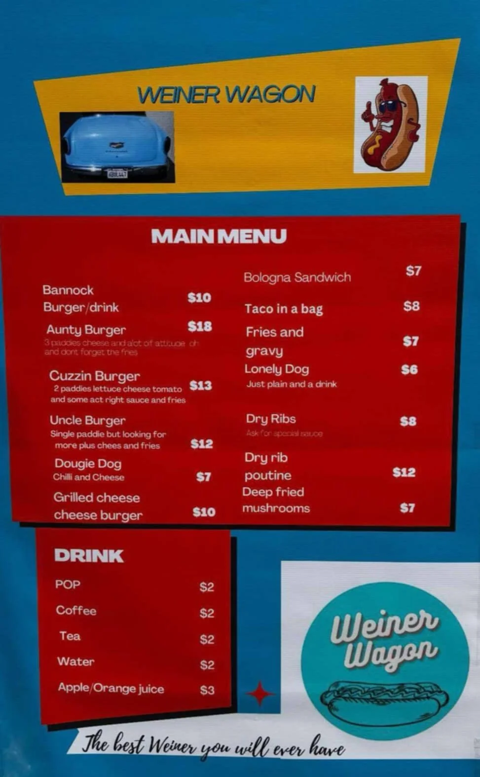 The Little Blue Weiner Wagon will be at the track from 9am Sunday.